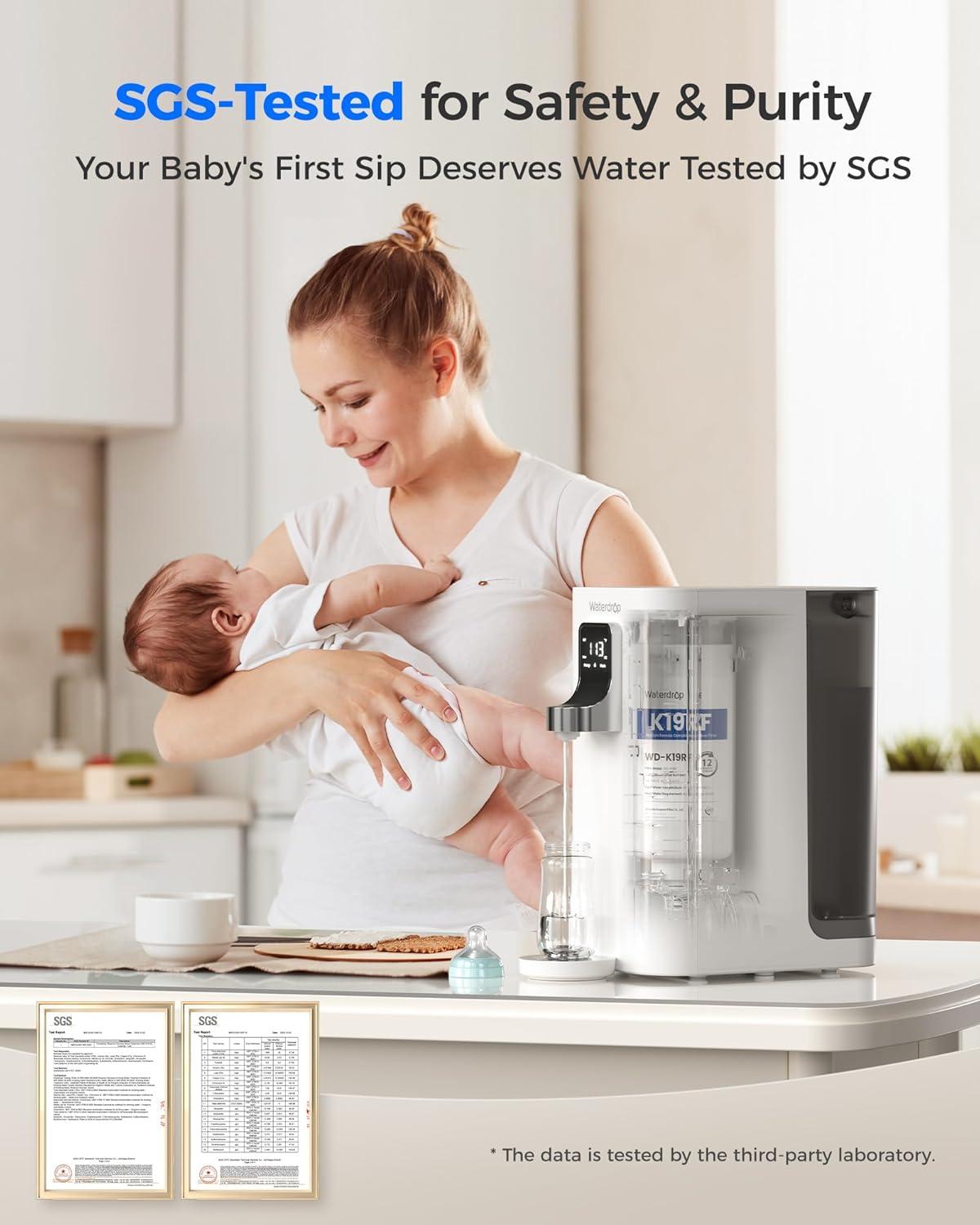 6-stage deep filtration: Its 3-in-1 filter of this RO instant hot water dispenser can effectively reduce TDS, chromium, PFAS, radium, fluoride, arsenic, salt, heavy metals, nitrate, particles, chloride and radioactive substances through layer-by-layer fine filtration, ensuring every drop is purified.