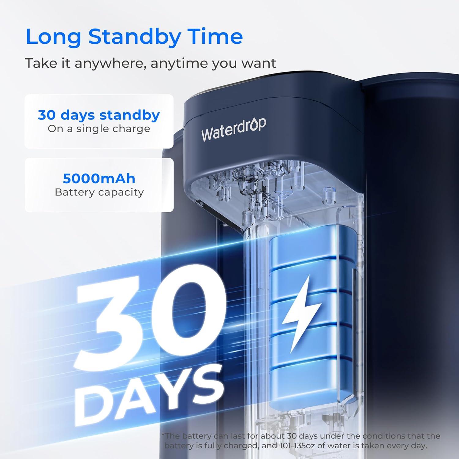 Waterdrop Alkaline Electric Water Filter Pitcher, Rechargeable Water Dispenser, Instant 200-Gallon 15-Cup Countertop System, NSF/ANSI 42, Reduce PFOA/PFOS, Chlorine, Lead, Blue, with 1 Filter(Midnight Blue)