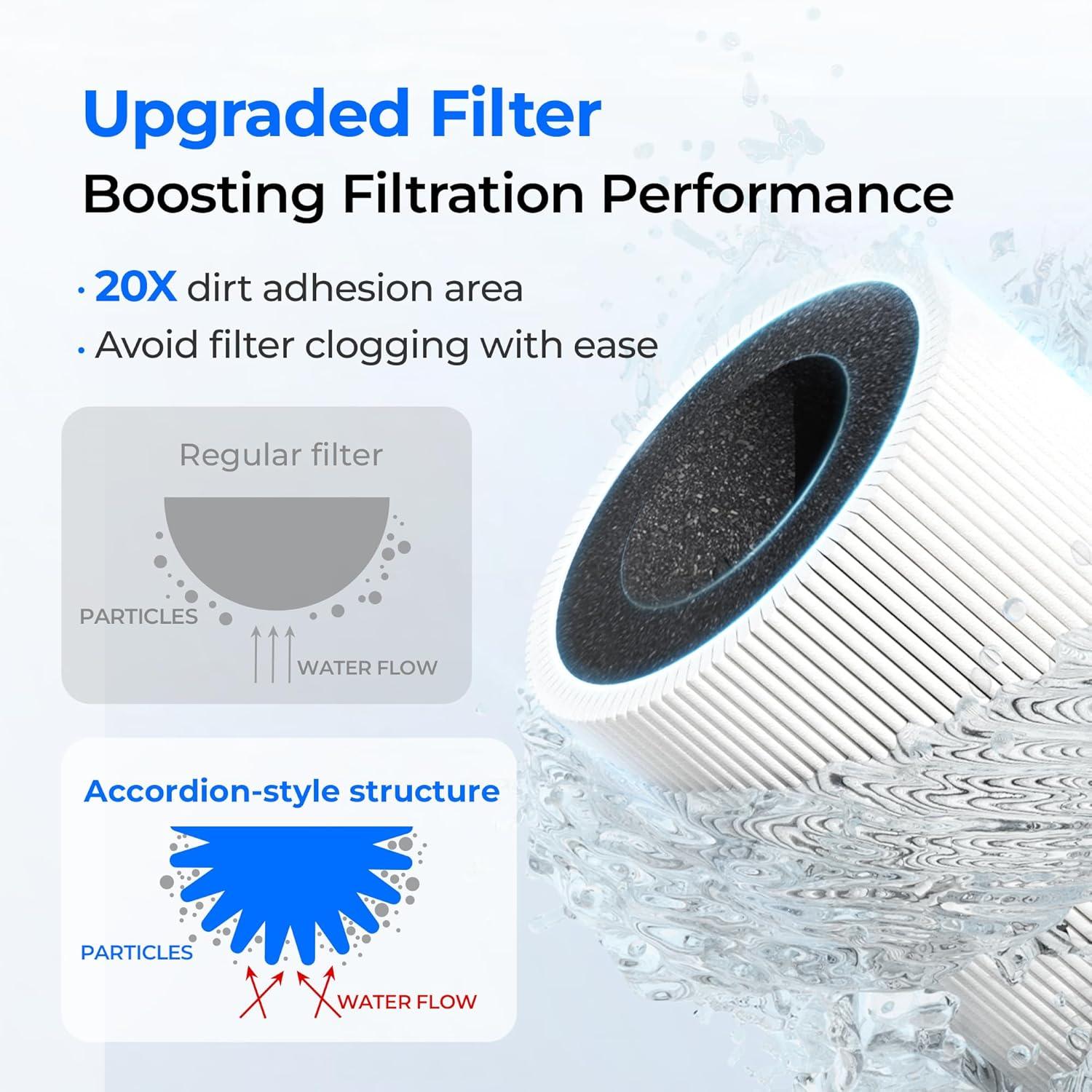 ENHANCED SILVER IRON ADDED: The improved filter materials contain silver ions to maintain waterway cleanliness, further reduce harmful substances, and ensure safe drinking water.