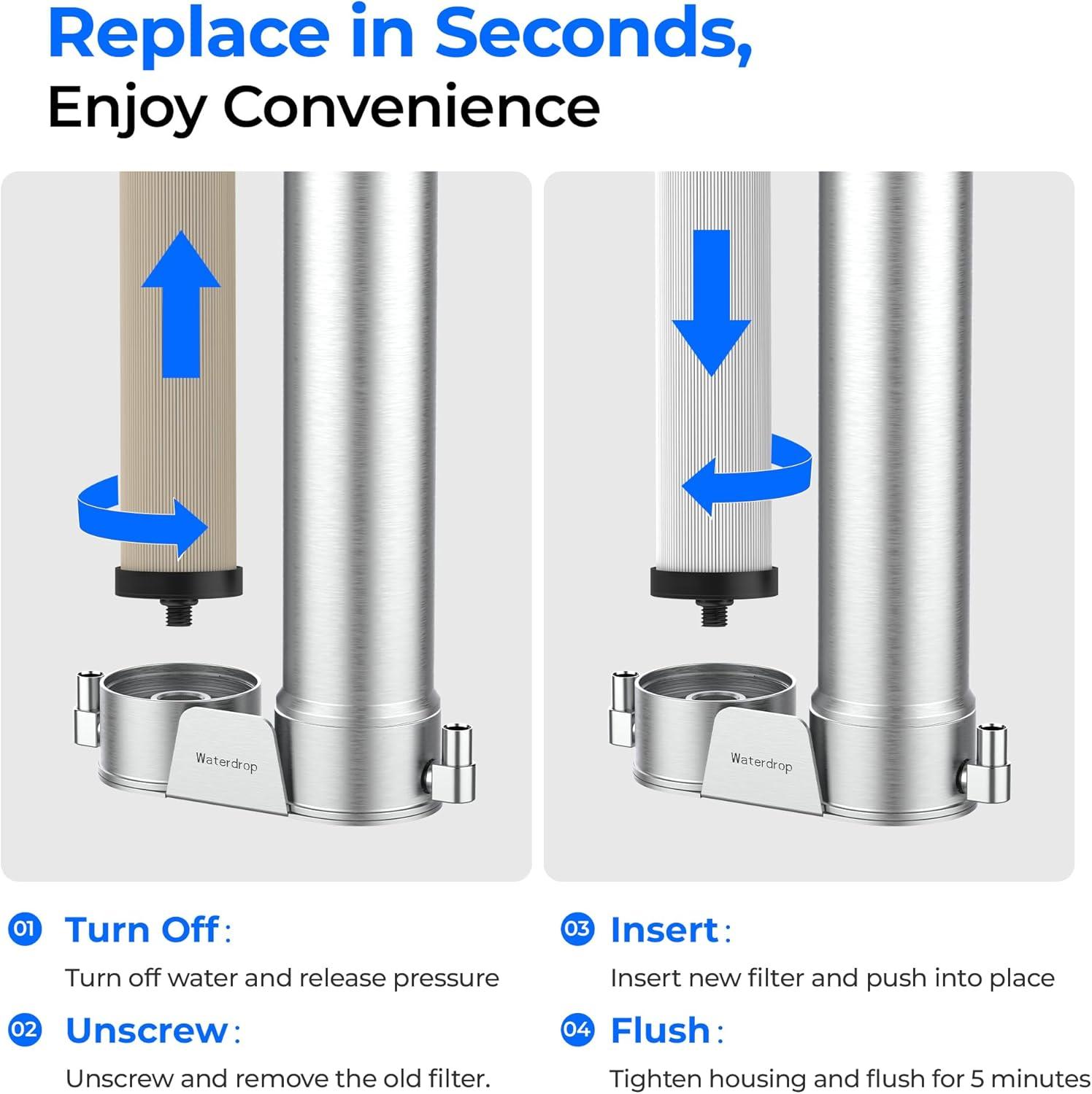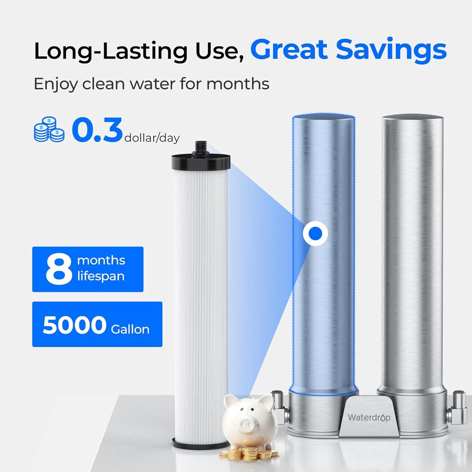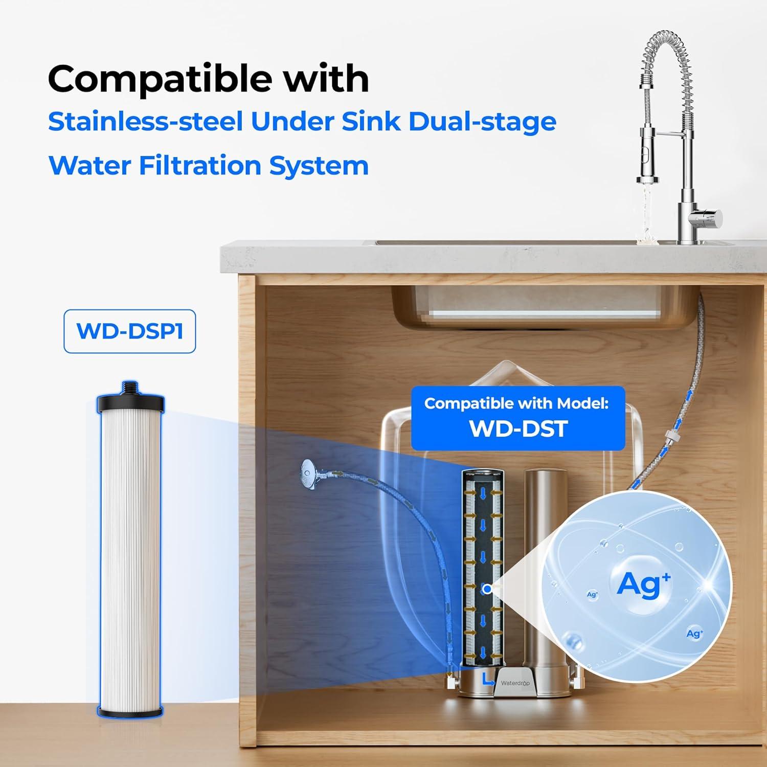 COMPATIBLE MODEL: This under sink replacement water filter is compatible with Waterdrop WD-DST stainless steel under sink dual-stage water filter system
